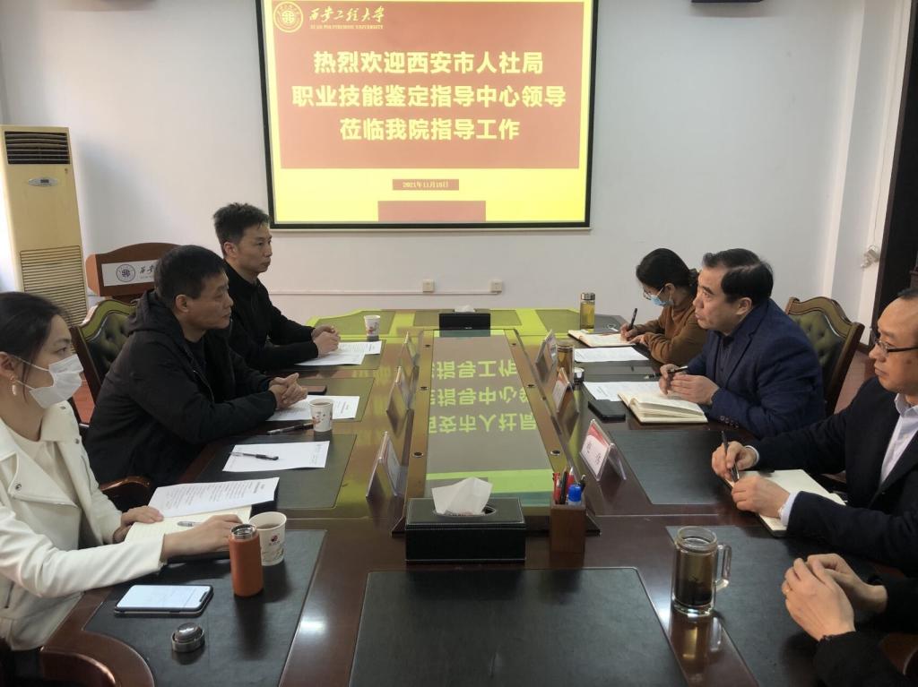 11月18日上午,西安市人力资源与社会保障局职业技能鉴定指导中心罗曼主任一行三人来到公司金花校区,对公司开展职业技能等级认定评价工作的开展情况,进行了调研,2026年世界杯官网负责人、纺织行业职业技能鉴定所负责人等同志参加调研会。