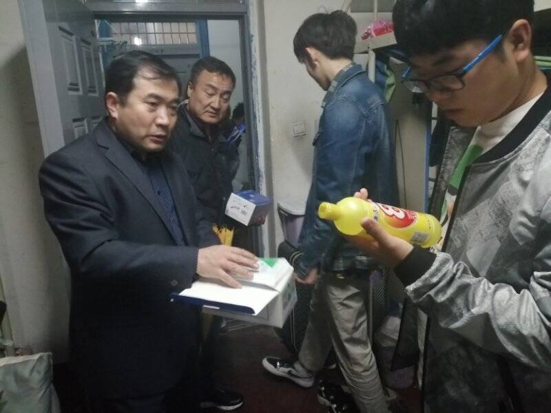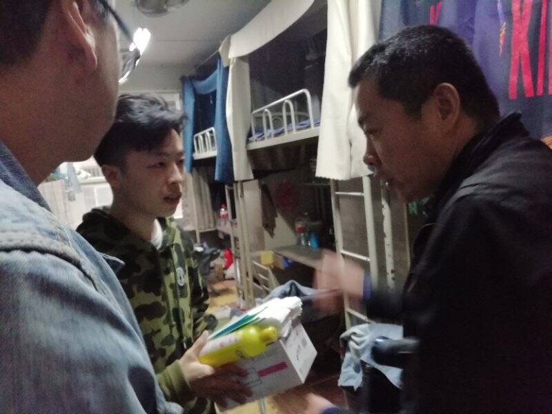 2019年4月12日下午16时,公司党总支书记王宇、经理马保科、副经理刘玉森以及全体辅导员对公司员工宿舍进行安全卫生大检查并发放了口罩、一次性毛巾、消毒液等防疫物品。