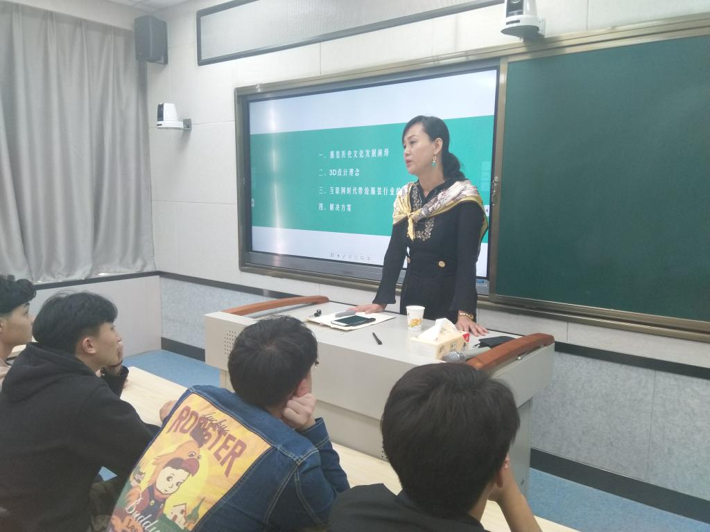 报告中,吕冰总经理通过个人的创业经历和感悟,从服装历史文化发展演艺、3D设计理念、互联网时代带给服装行业的希望和困惑以及解决方案四个方面进行了宣讲。在讲座中,她讲述了自己的创业经历,如何从小公司一步步发展壮大成为目前有员工一百六十名、裁剪师五名、占地面积约一千平米、拥有现代化的生产设备和工艺技术、并拥有“滨滨服饰”品牌家俱等,这个有一定实力的企业。勉励同学们脚踏实地的认真学习、科研,在今后学业上、工作上有辉煌的成就。
