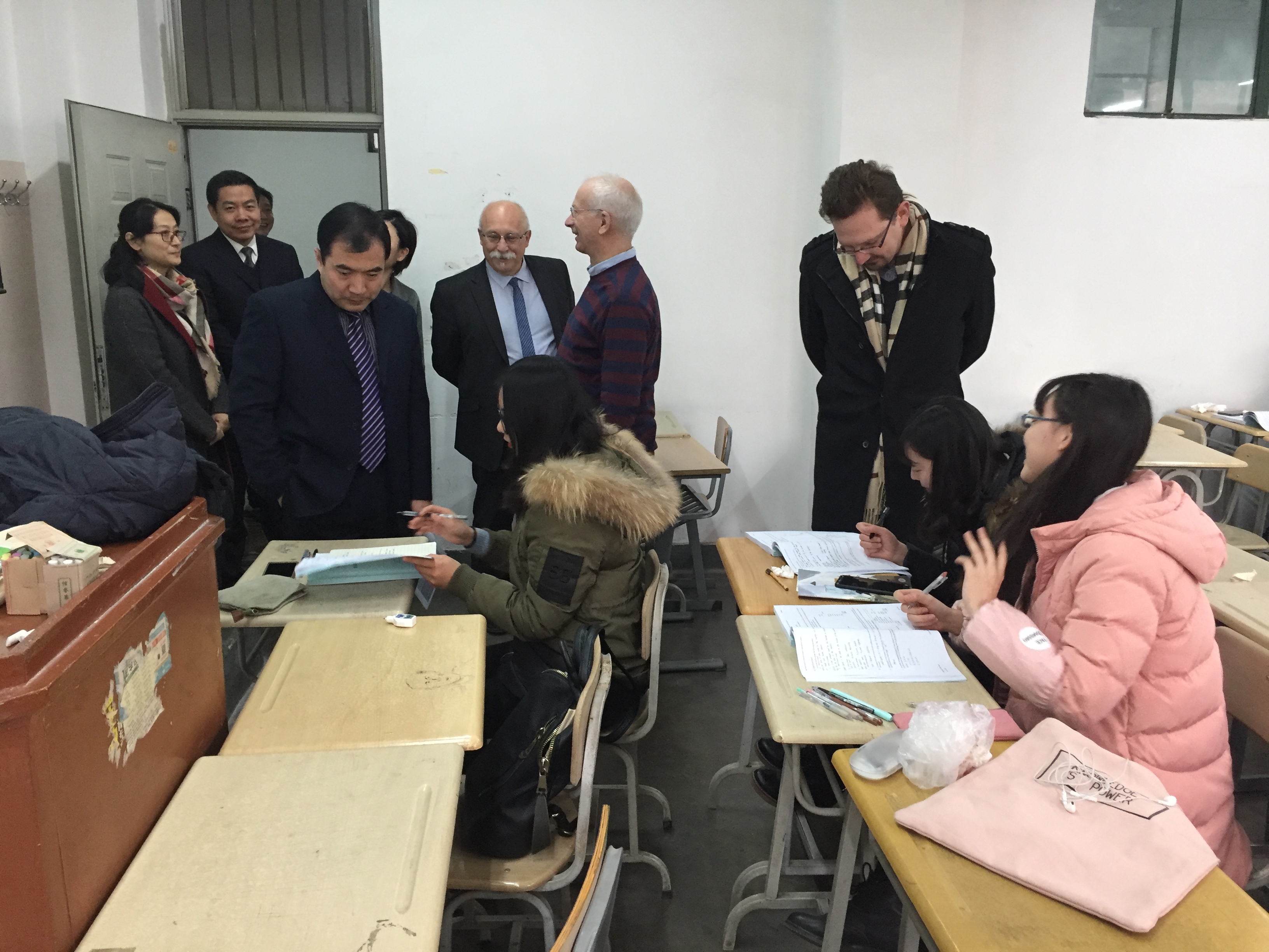 随后,蒂诺·本迪奥一行参观了公司的机房、语音室、录播教室等基础教学环境,对公司的教学设施加以肯定。他还参观了外教课程,气氛十分活跃,课堂教学效果很好。他强调今年与公司共同申报本科层面的中外合作办学项目是两校深化合作的开端,对公司给予的支持和帮助表示感谢并期待两校在未来开展更多形式、更深层次的合作。