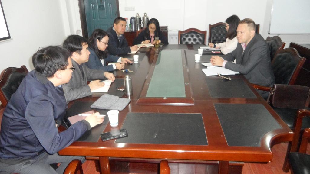 马保科副经理首先代表中澳国际公司对Tim Gilbert一行的到来表示热烈欢迎,并向客人简要介绍了公司中澳合作办学项目的运行情况、员工开展假期游学及短期交流访学等活动的设想,Tim对双方项目的执行情况给予了高度评价。随后,双方就公司提出开展本科层次办学的合作设想进行了深入讨论,并针对专业匹配、课程衔接、语言学习等培养过程中可能出现的问题进行了沟通,Tim也期待两校在本科层次上的“全方位、深层次”合作。